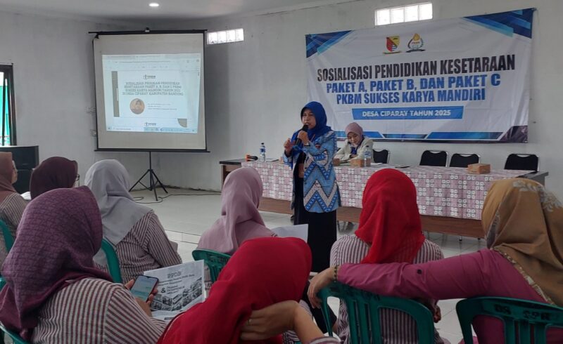 Melalui sosialisasi pendidikan kesetaraan Paket A, Paket B, dan Paket C di Aula Kantor Desa Ciparay, Kecamatan Ciparay, Kabupaten Bandung, Jumat (20/12/2025), PKBM tersebut mendorong warga untuk kembali “sekolah, menempuh pendidikan.