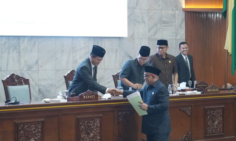 BANDUNG – Bupati Bandung Dadang Supriatna menyampaikan Pengantar Nota Keuangan Rancangan Peraturan Daerah (Raperda) APBD Kabupaten Bandung Tahun Anggaran 2026 dalam rapat paripurna DPRD setempat, Senin (29/9/2025).