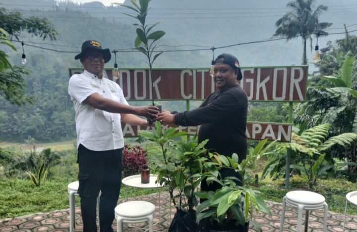 CIANJUR – Penyuluh Kehutanan Wilayah Binaan Naringgul, Cikalongkulon, Karangtengah, dari KCD Distabun Wilayah IV Jabar, Ade Kusnadi, berkunjung ke Wisata Alam Pondok Citengkor, Desa Sukabakti, Kecamatan Naringgul, Cianjur selatan, sekaligus memberikan bantuan bibit sebanyak 10 buah pada Rabu 22 April 2026.