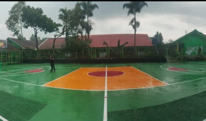 BANDUNG – SMP Negeri 1 Pasirjambu, Desa Pasirjambu, Kecamatan Pasirjambu, Kabupaten Bandung, baru saja menyelesaikan proses pengecatan ulang lapangan olahraga mereka.