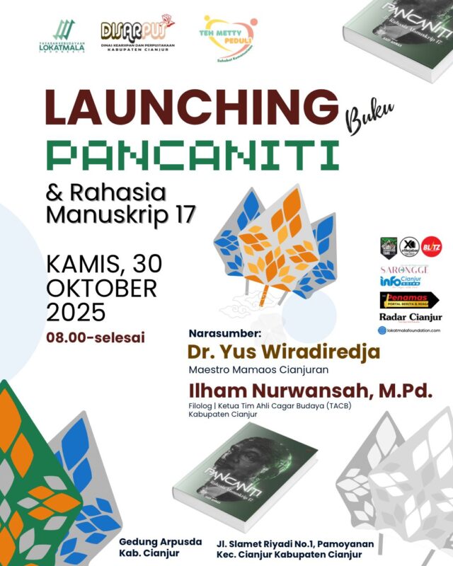 Peluncuran resmi novel PANCANITI & Rahasia Manuskrip 17 akan digelar Kamis, 30 Oktober 2025, di Gedung Arsip dan Perpustakaan Daerah (Arpusda) Kabupaten Cianjur, Jalan Slamet Riyadi No.1, Pamoyanan Kecamatan Cianjur.