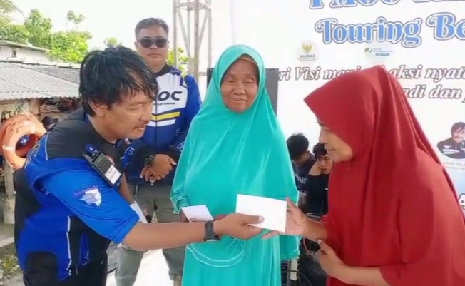 Selain kegiatan touring, peringatan HUT PMOC ke-15 diisi dengan pemberian santunan kepada anak yatim.