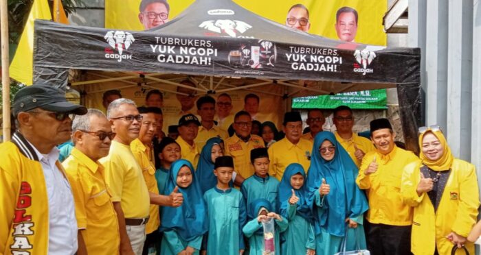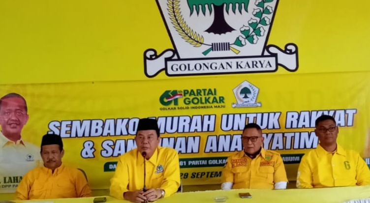 SUKABUMI – Dewan Pimpinan Daerah (DPD) Partai Golkar Kota Sukabumi merayakan HUT ke-61 Partai Golkar dengan cara berbagi melalui kegiatan pasar murah sembako dan santunan untuk 50 anak yatim