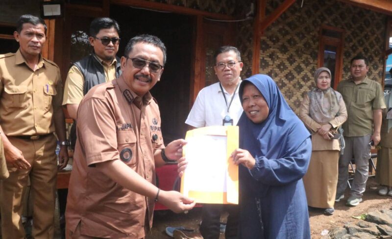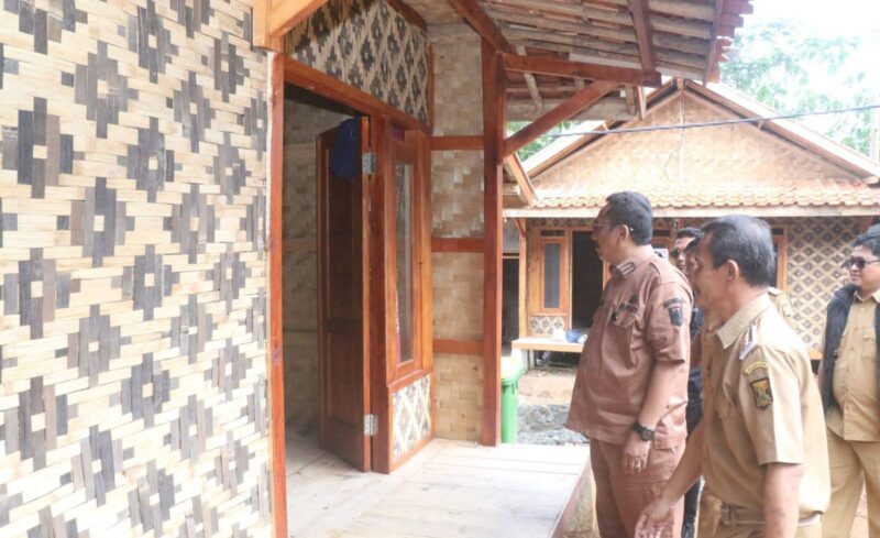 SUKABUMI – Bupati Sukabumi H. Asep Japar meninjau hasil pembangunan hunian tetap (huntap) bantuan dari Gubernur Jabar, Bupati Sukabumi dan Pemerintah Desa Mekarsari untuk para penyintas bencana pergerakan tanah di Kecamatan Nyalindung, Kabupaten Sukabumi, Senin (3/11/2025).