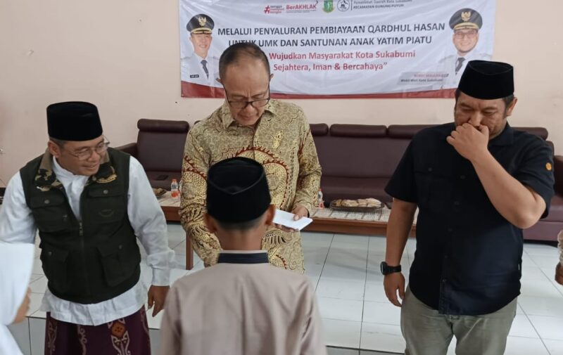 KOTA SUKABUMI – Wali Kota Sukabumi H. Ayep Zaki menghadiri penyaluran pembiayaan qardhul hasan yang dirangkai dengan pemberian santunan kepada anak yatim piatu di aula kantor Kelurahan Gunungpuyuh, Kecamatan Gunungpuyug, Sabtu (20/9/2025).