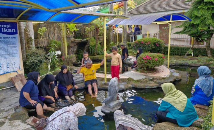 Selain berendam, pengunjung bisa menikmati terapi ikan seharga Rp10.000 per orang untuk 25 menit. “Terapi ikan itu manfaatnya, pertama, buat mengambil kulit mati, yang keduanya bisa buat rematik-rematik, yang ketiganya buat pencerahan aura karena enzim-enzim ikan itu bikin kita fresh, bisa ketawa,” jelas Aca.